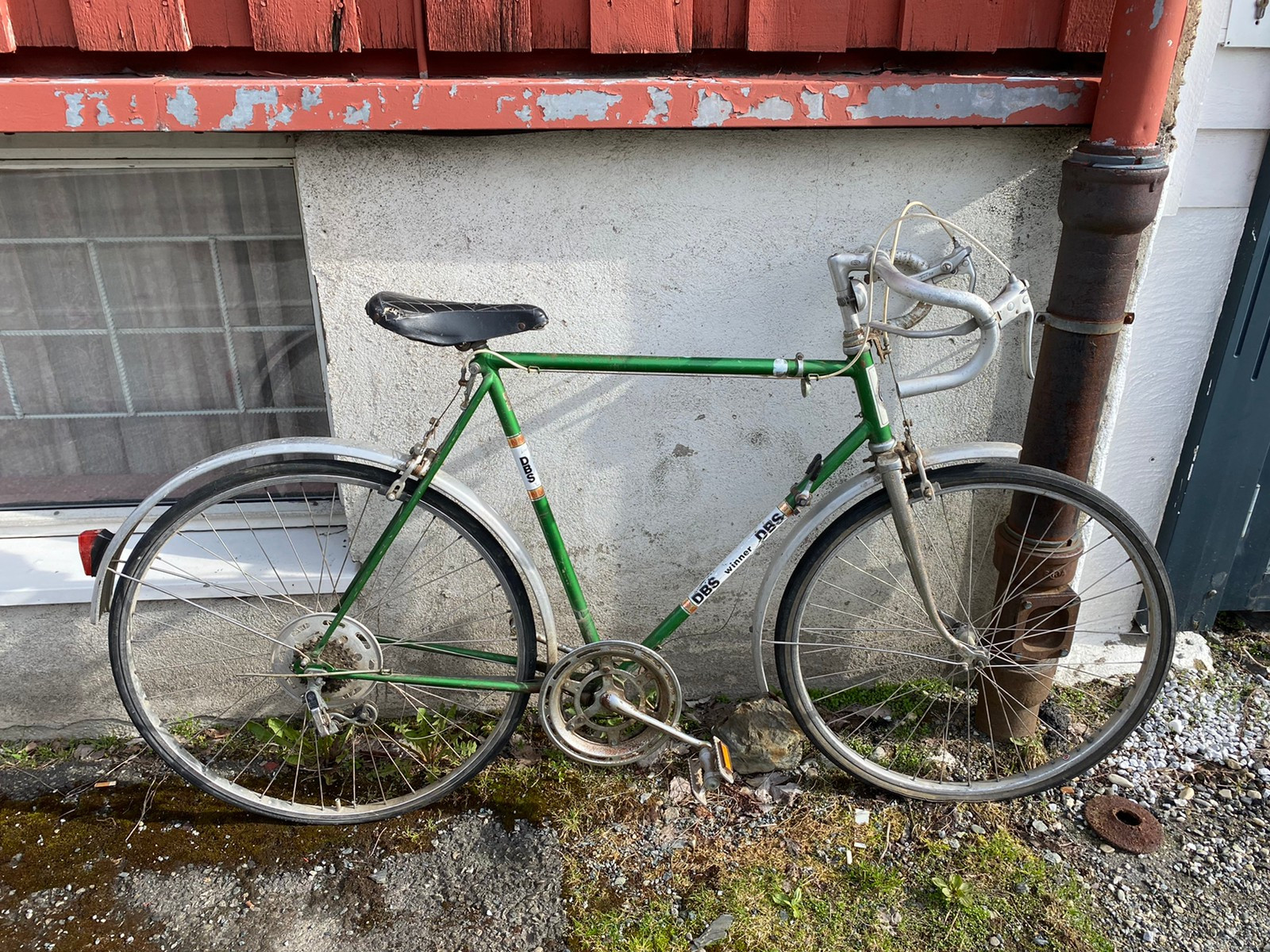 I found a listing for a derelict DBS Winner, an entry-level racing bike from the 70's, where basically only the frame and drive train were in a somewhat OK condition. The handlebars were bent, the leather saddle was cracking and horrible to sit on, the wheels trashed and the tires decayed. The reason I jumped on this was that the frame size was 61 cm. That is kind of rare, and as a somewhat tall person I wanted a large bike.