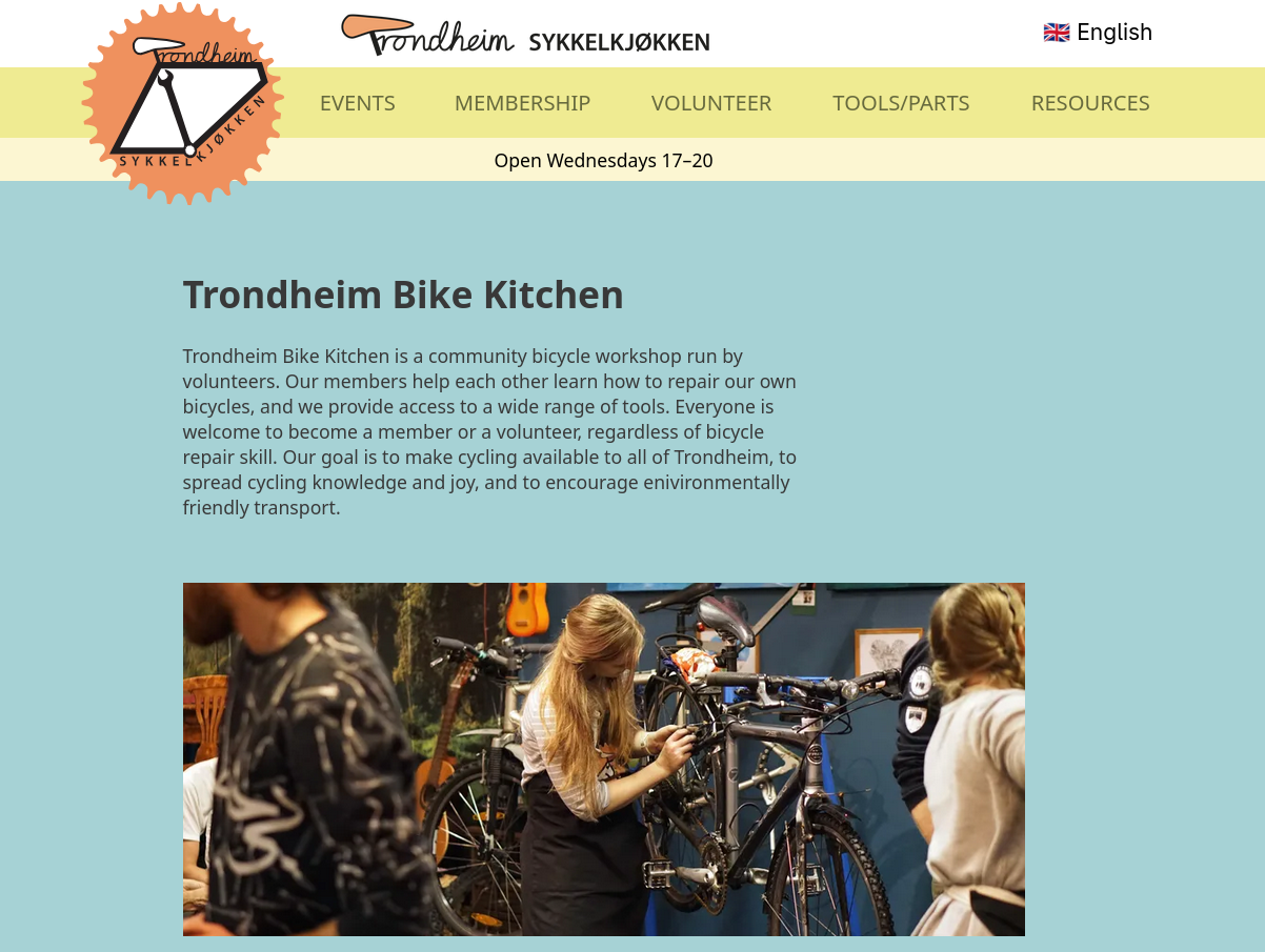 This is the website of Trondheim Bike Kitchen. It is built with Sveltekit, hosted on Netlify and has a few features: